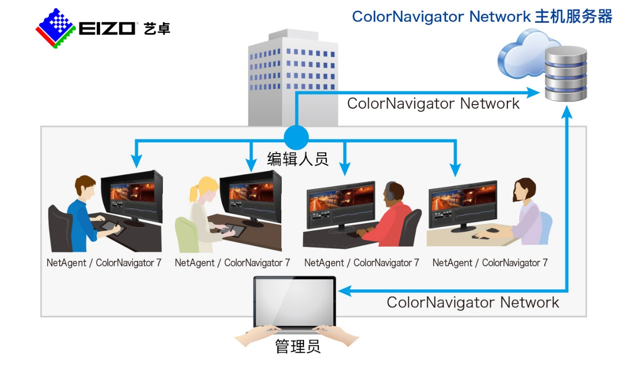 colornavigator network可为安装colornavigator 7 或colornavigator nx的coloredge显示器提供集中式质量控制。管理员可以设置色彩模式、计划自校准、激活按键锁定以防止意外更改色彩设置、注册或调整资产管理设置、导入/导出显示器设置。无论所有显示器是否位于统一地点,都可以统一进行色彩管理。